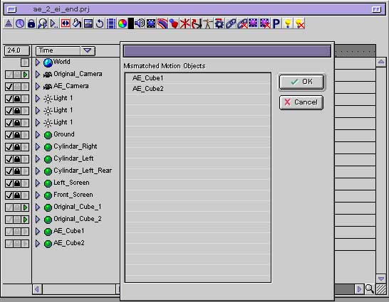 Note: If your object doesn't match the name of the object from AE/Maya, or if the visibility is turned off, you'll get the dialog below.