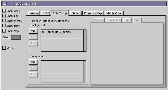 10. Add the "from_ae_2_ei.mov" file as a background/roto image for the camera.