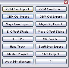 | Maya to Nuke | AddCube | CamLinker | AE to SynthEyes Points | AE to SynthEyes Camera |