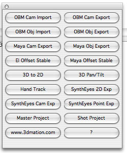 | Maya to Nuke | AddCube | CamLinker | AE to SynthEyes Points | AE to SynthEyes Camera |