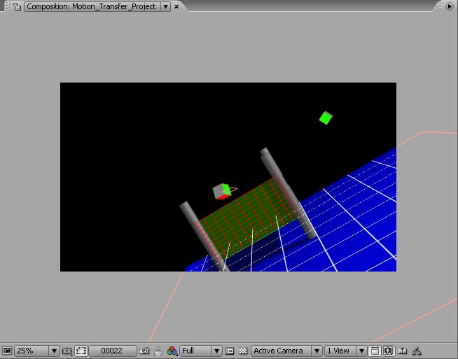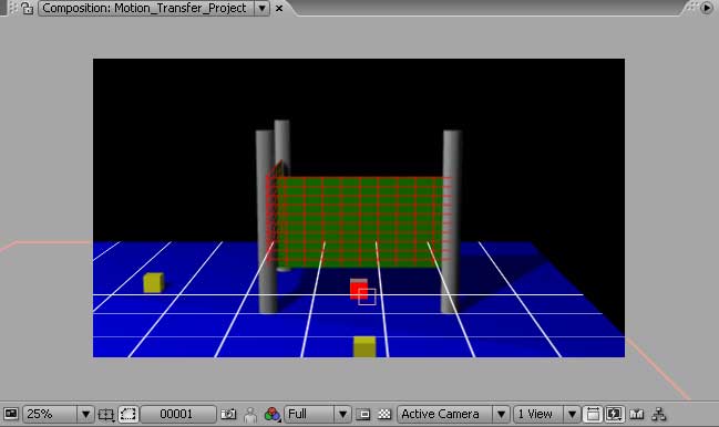 This project already has a background image as a proxy that was rendered from EI. It also has ground, screen, and cube objects built from planes in AE to help speed things along.