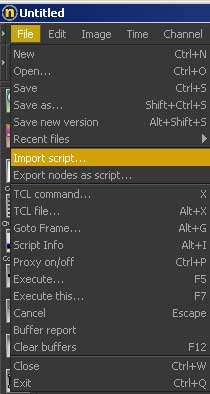 5. Launch Nuke, and import a script under the File menu. Direct the nav window to import the script you just exported in step 4.
